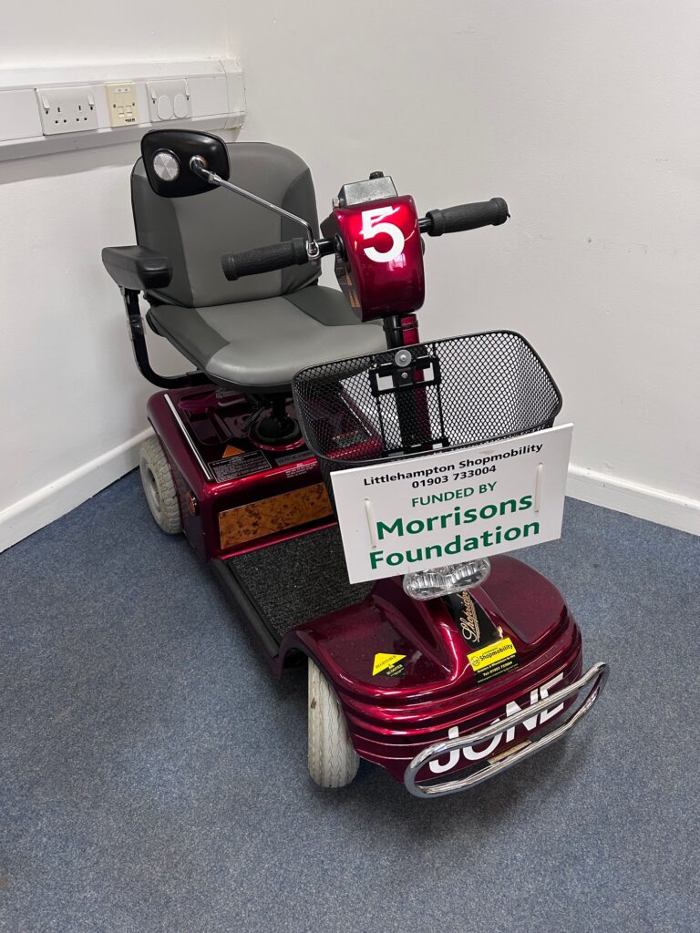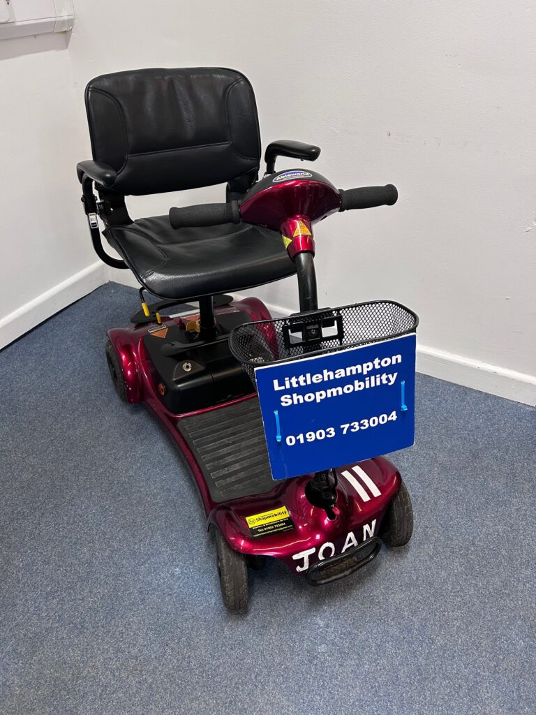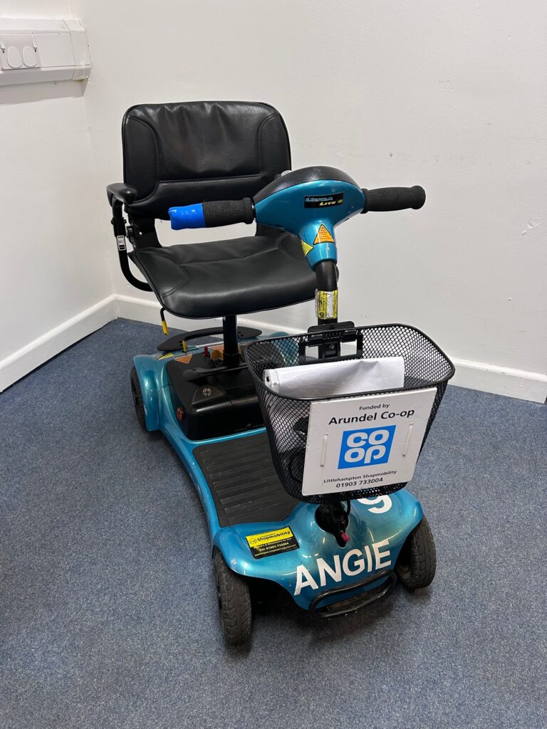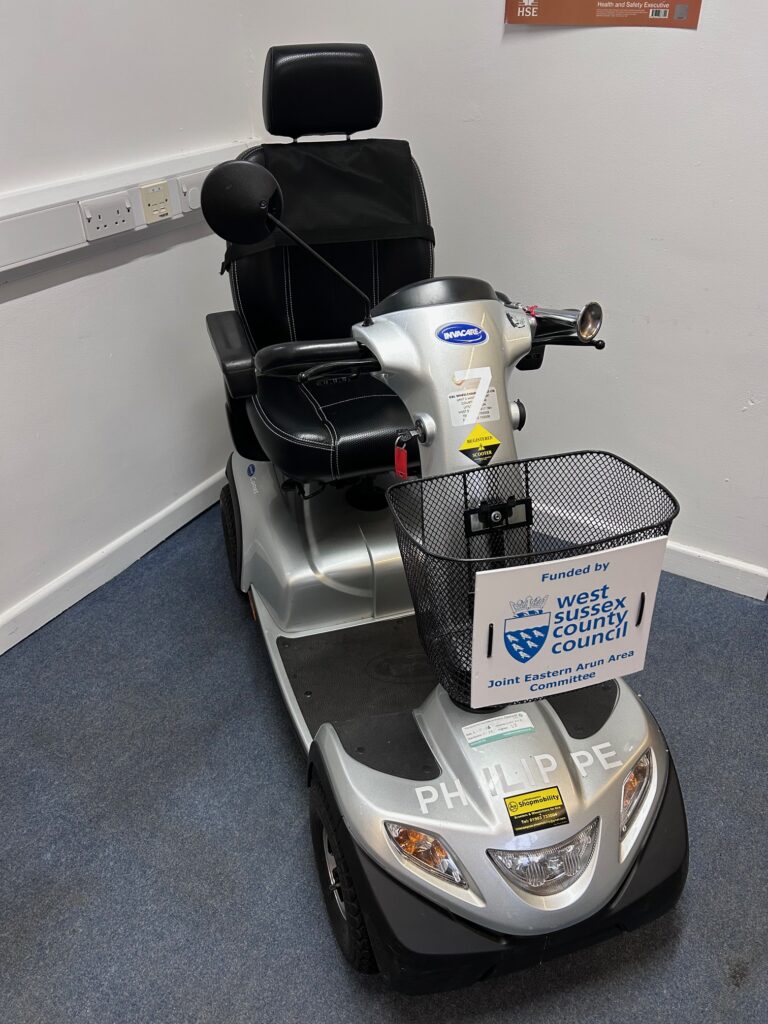 This travel scooter was donated by the family of the late Joan Caffyn.