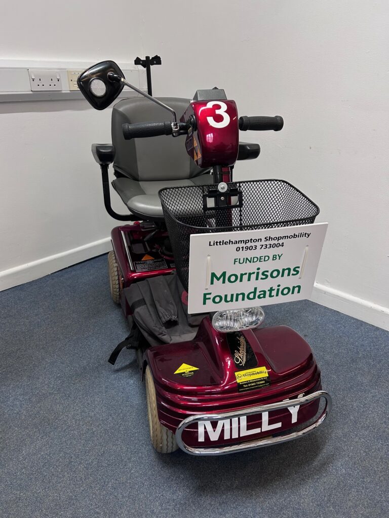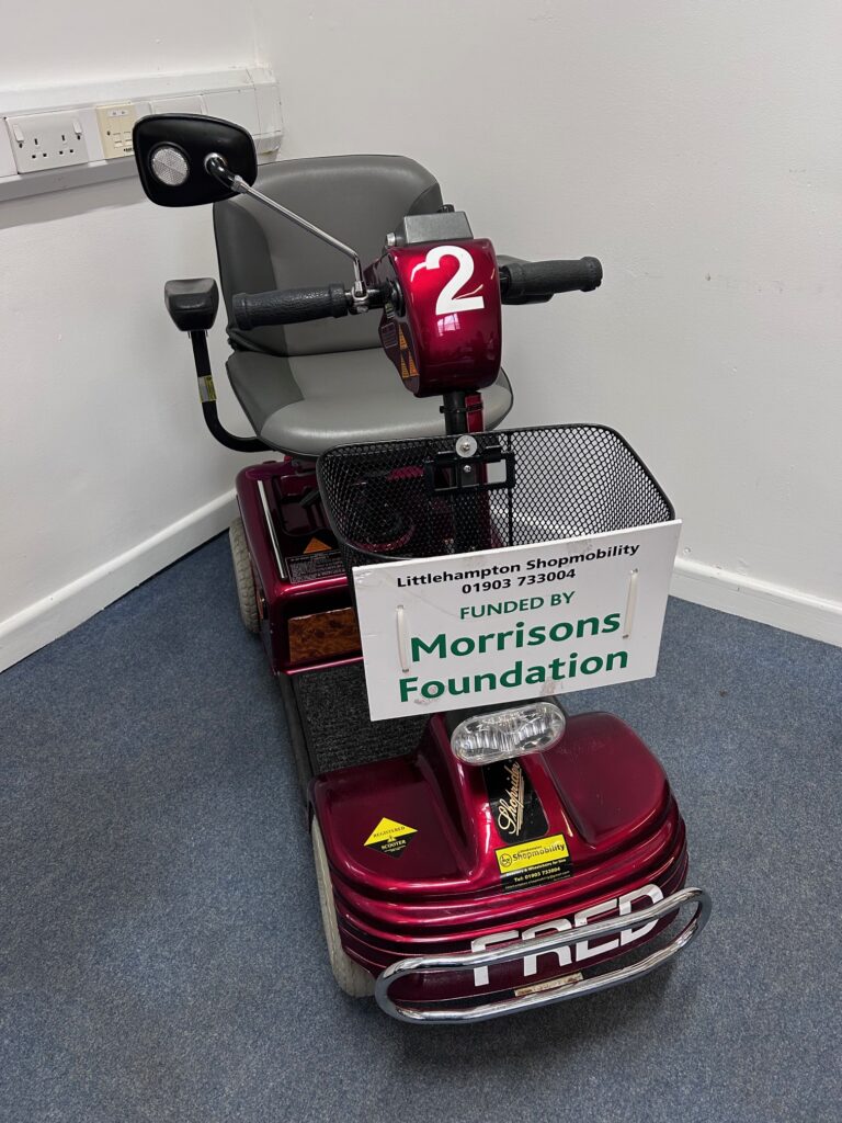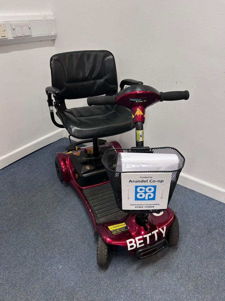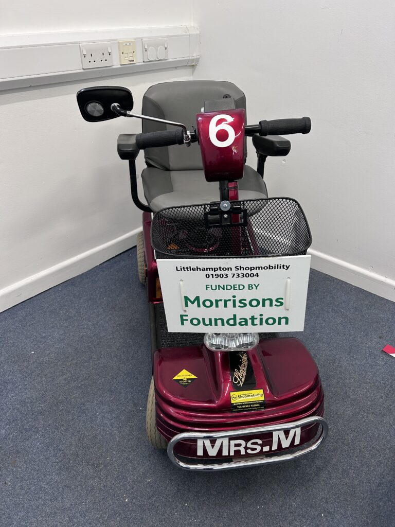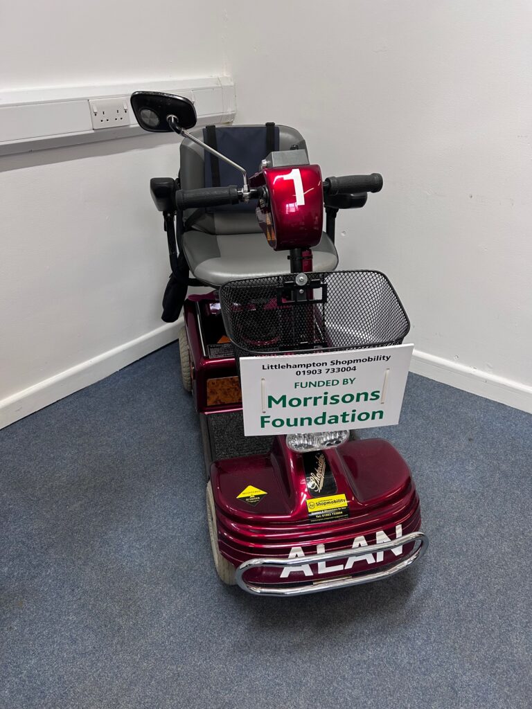 This travel scooter was donated by the family of the late Joan Caffyn.